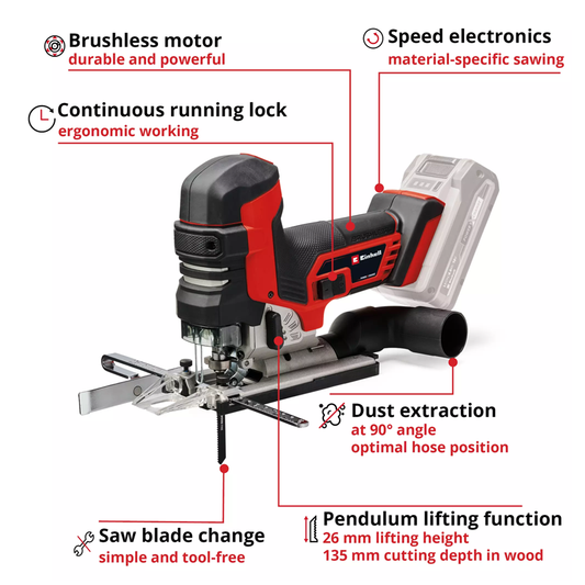 Einhell TP-JS 18/135 Li BL - Solo PXC 18V 135MM Professional Brushless Jigsaw (Body) 4321260