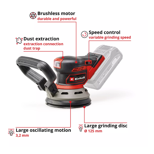 Einhell TP-RS 18/32 Li BL-Solo PXC 18V 125MM Professional Brushless Rotating Sander (Body) 4462020