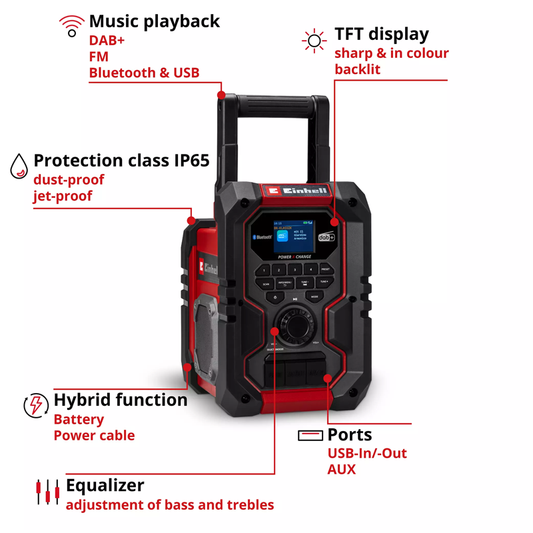 Einhell TE-CR 18 Li PXC 18V DAB+/FM/Bluetooth Site Radio (Body) 3407995