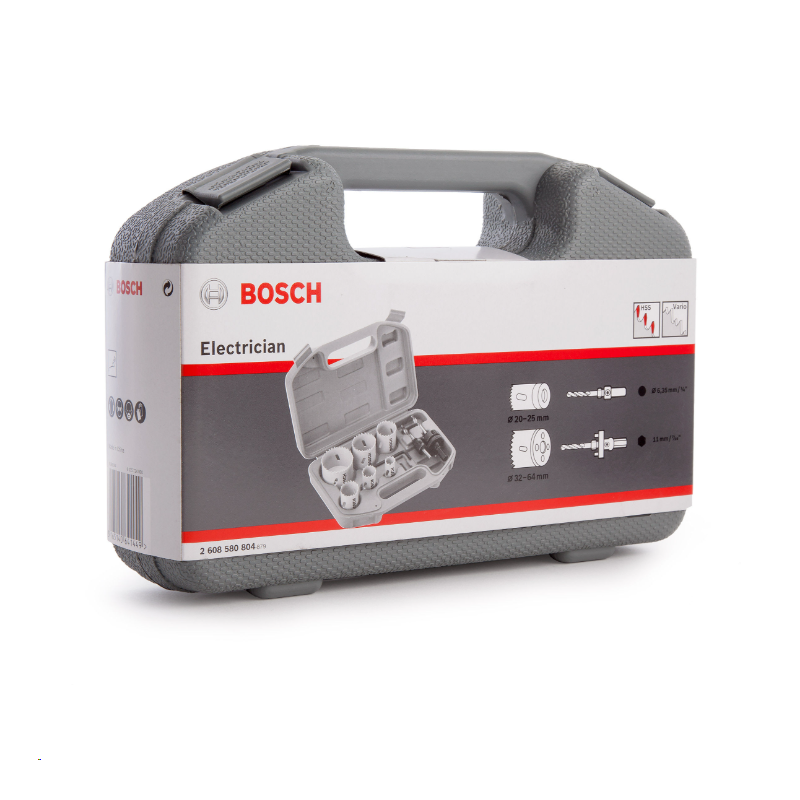 Bosch has released this new high speed steel holesaw set specifically for Electricians. It features the sizes they use every day and come in a sturdy plastic carry case. HSS Bi-Metal With 8% cobalt alloy for extreme resilience and long lifetime. For Drilling in steel and cast iron, structural steel, alloyed and unalloyed aluminium, bronze, copper, PVC, acrylic glass and wood. The cutting quality depends on the correct speed and the coolant used.