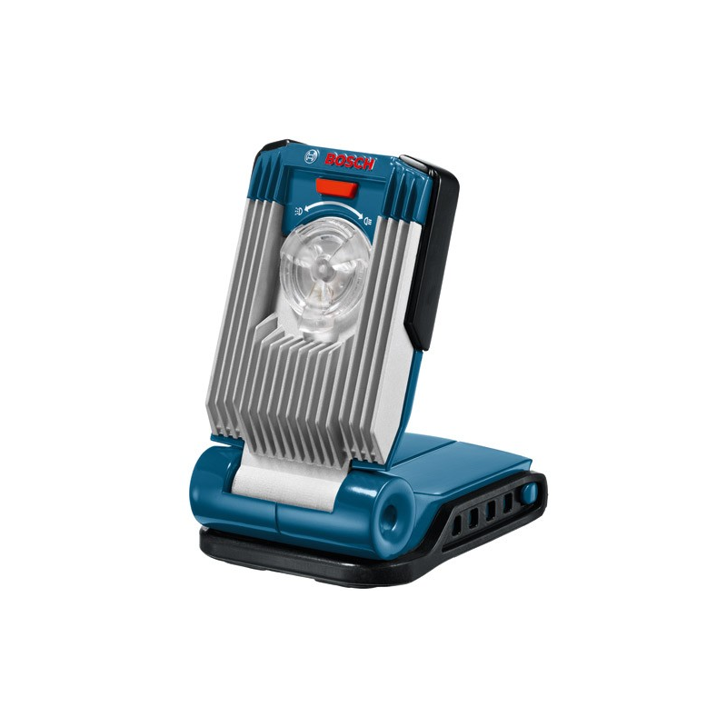 Bosch GLIVARILED lithium work light or torch fully flexible use in the hand or positioned to offer maximum illumination, 300 lux from 3 innovative LED's, in difficult conditions. The handy GLI VariLED bright pocket sized worklight offers the tradesman a fully adjustable light source with spot and flood plus 9 angle settings in a compact body due to the folding mechanism. Bosch GLIVARILED lights can be powered using slide fit 14.4v or 18v Bosch lithium battery packs.