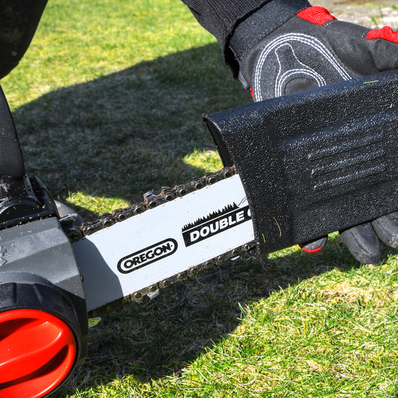 The Cobra CS1024V cordless chainsaw is equipped with a 25cm (10") Oregon bar and chain. With its lightweight body, tool-less chain tensioner and safety blade brake, this handy saw is always ready and up to the job.
