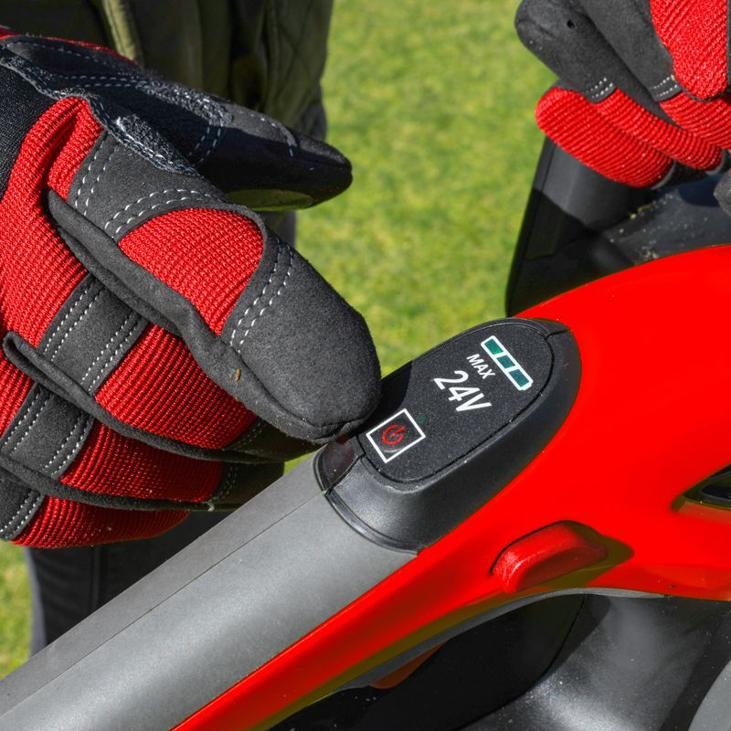 The chainsaw is powered by a 24V lithium-ion battery which delivers up to 20 minutes run time and a chain speed of 5.5m/s. The battery charger takes approximately 90 minutes to charge the 2Ah battery which features a battery level indicator.