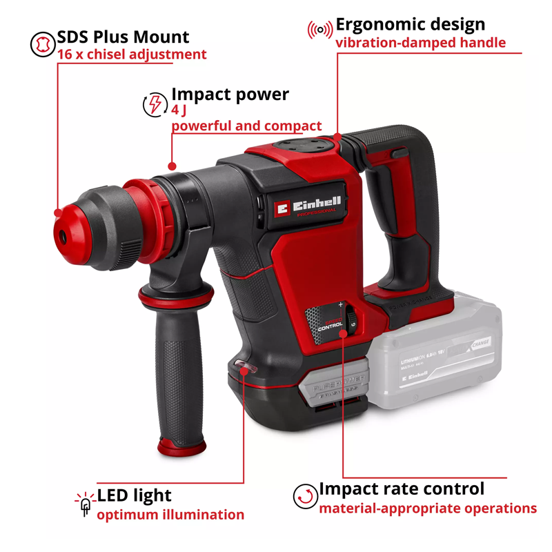 Einhell TP-DH 18/4 Li BL-Solo PXC 18V 4J SDS Plus Professional Brushless Demolition Hammer (Body) 4514190