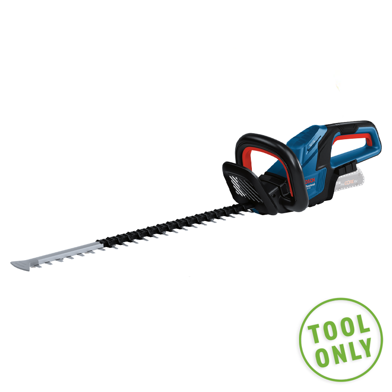 The GHE 18V-60 Professional is the strong cordless performer in your garden – its brushless motor supports powerful performance and a long tool service life. It allows continuous cutting through medium dense hedges while the Bosch Anti-Blocking System prevents the hedge cutter from jamming. The cutting capacity of 20 mm makes sure that you can cut even thicker branches smoothly and conveniently. The GHE 18V-60 Professional is lightweight and comes in an ergonomic design. This minimises user fatigue – especially for cutting dense hedges.