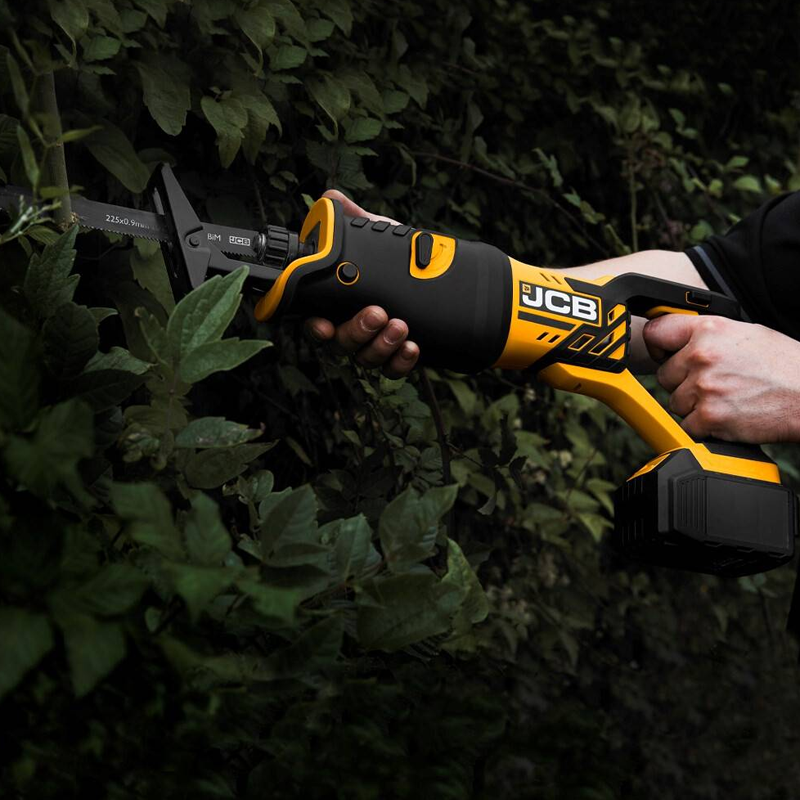 The product features a tool-free blade change system and variable speed control, allowing for versatile cutting of metal, wood, and plastic. With an adjustable foot plate and lock switch for safety, the saw offers flexibility and stability in cutting depth. Additionally, the ergonomic design and rubber grip overmould provide increased comfort for the user.