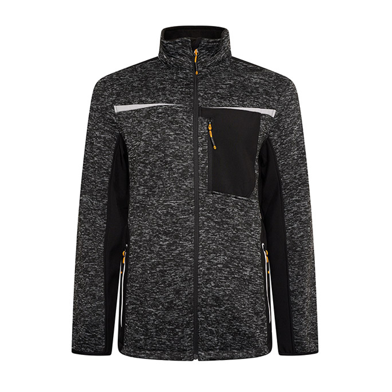 This Knitted style full zip jumper features two zipped side access pockets for convenience, as well as elasticated taped cuffs and a drawcord around the bottom hem for all-day comfort during work. The chest, shoulders, and side pockets also have reflective detailing, and softshell side panels and underarms ensure ease of movement. The funnel style neck provides extra warmth, making this fleece suitable as an outer layer in mild temperatures.
