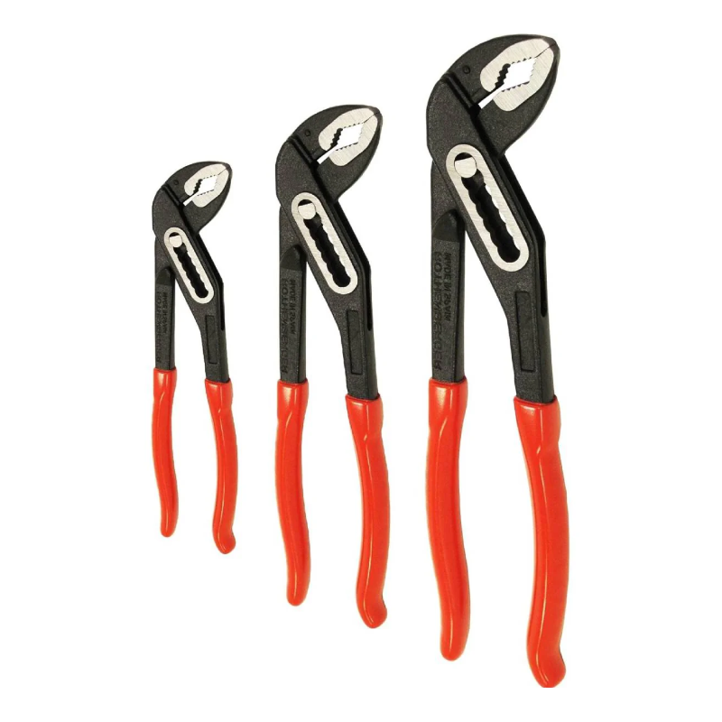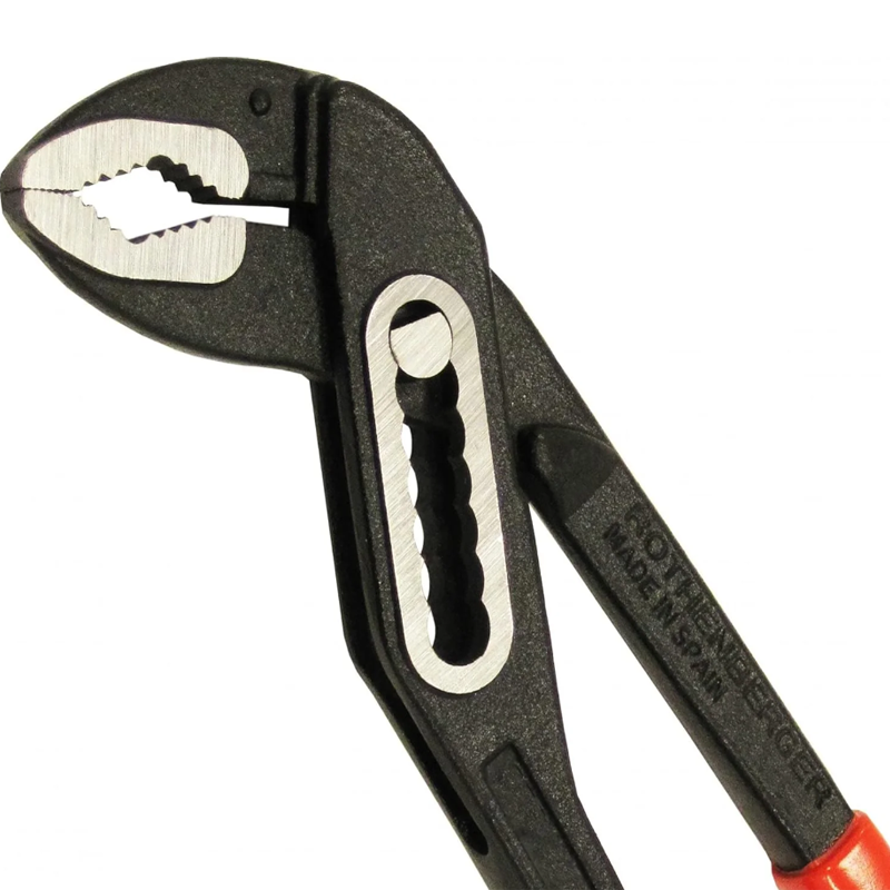 The Rothenberger Water Pump Pliers Set for twisting pipes or nuts in confined locations, this Rothenberger SPK water pump pliers set includes 7", 10", and 12" tools. Long and narrow, these pliers are equipped with self-clamping jaws and are non-slip, even on smooth tube surfaces.